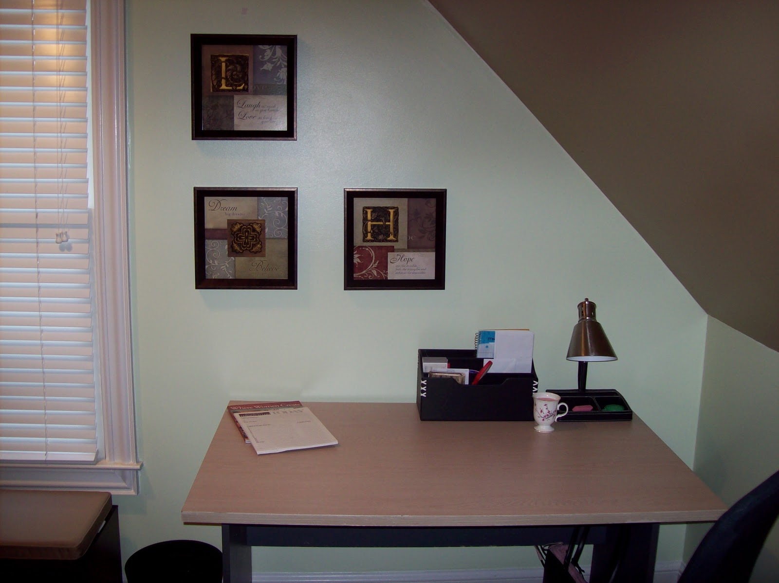 This is the existing desk, but everything else in the room is new. He even purchased